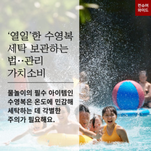 [컨슈머와이드-강진일 기자] 물놀이의 필수 아이템인 수영복은 온도에 민감해 세탁하는 데 각별한 주의가 필요하다.우선 물놀이를 즐긴 후 미지근한 물에 수영복을 바로 헹구거나 담가두어야 한다. 물놀이 중간에 자주 샤워를 해주는 것도 도움. 해수욕을 즐겼다면 수영복에 낀 모래를 꼼꼼하게 물로 씻어야 한다. 화학물질을 제거한 수영복의 물기까지 없앴다면 수건에 싸서 통풍이 잘 되는 수영 가방에 넣어 집으로 가져가면 된다.물놀이 후 집에 가져온 수영복을 세탁할 때는 미지근한 물에 담가 손빨래 필수. 이때 중성세제를 사용해야 한다. 세탁한 수영