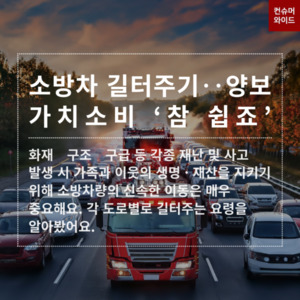 [컨슈머와이드-강진일 기자] 화재․구조․구급 등 각종 재난 및 사고 발생 시 가족과 이웃의 생명 · 재산을 지키기 위해 소방차량의 신속한 이동은 매우 중요하다. 그런데 소방차를 제대로 비켜주지 못하면 오히려 방해가 될 수도 있다. 따라서 각 도로별로 길터부는 요령을 알아봤다.21일 소방청에 따르면, 교차로의 경우 주행 중인 차량은 도로 오른쪽 가장자리에 일시 정지해야 한다. 일방통행 도로에서는 오른쪽 가장자리에 일시 정지하고, 편도 1차선의 경우 오른쪽 가장자리로 최대한 진로를 양보해 운전 또는 일시 정지해야 한다. 편도2차선의 경