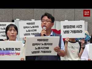 취재 및 편집: 전휴성 기자/ 기획: 컨슈머와이드[컨슈머와이드-전휴성 기자] “좀 치사스럽지 않습니까?” 이는 지난달 31일 오전 10시 30분 서울 신세계 백화점 본점 앞에서 진행된 백화점 면세점 판매서비스 노동조합(이하 노조) 집회에서 서비스연맹 김광창 위원장이 백화점을 향해 던질 말이다. 상생, 착한 기업 등에 가치를 두고 있는 소비자라면 이들의 외침에 귀를 기울여야 한다. 이것이 바로 가치소비다.이날 노조원들은 30도가 넘는 폭염 속에서 원청인 백화점의 냉방 차별을 멈추고, 영업 준비 시간 냉방 가동을 촉구하는 집회를 열었다