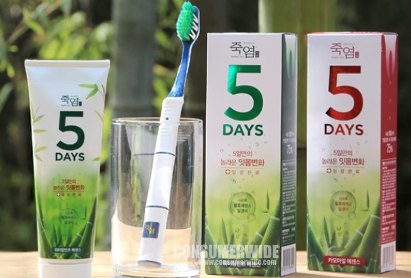 LG생활건강 관계자는 “죽염 5DAYS에는 최근 논란이 되고 있는 유해 성분이 전혀 들어있지 않은 안전한 치약”이라며 “최근 스트레스나 식습관, 호르몬 불균형으로 잇몸질환을 겪는 소비자들이 증가하는 추세에 맞춰 잇몸 전문 치약 ‘죽염 5DAYS’를 출시해 제품 라인을 강화하는 한편, 올해로 출시 22주년을 맞이하는 잇몸 전문 브랜드 ‘죽염’의 브랜드 입지를 굳건히 하기 위해 선보이게 됐다”고 설명했다.
