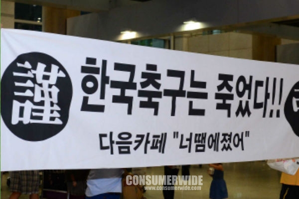 "한국축구는 죽었다. - 다음카페 '너땜에졌어'"라고 적은 플래카드의 공항 등장과 야유를 보내는 이들의 모습, 그리고 급기야 호박엿 사탕을 선수들에게 던지는 장면과 이 엿사탕을 집어 들고 "이 엿을 먹어야 하나요?"라고 씁쓸한 미소를 지은 아직은 나이 어린 선수의 모습에 참으로 침통하고 참을 수 없는 부끄러움이 느껴졌다.
