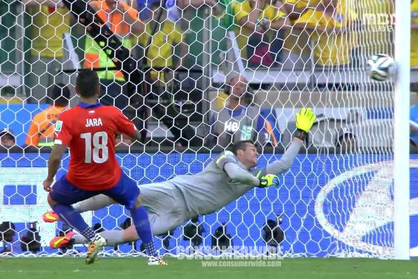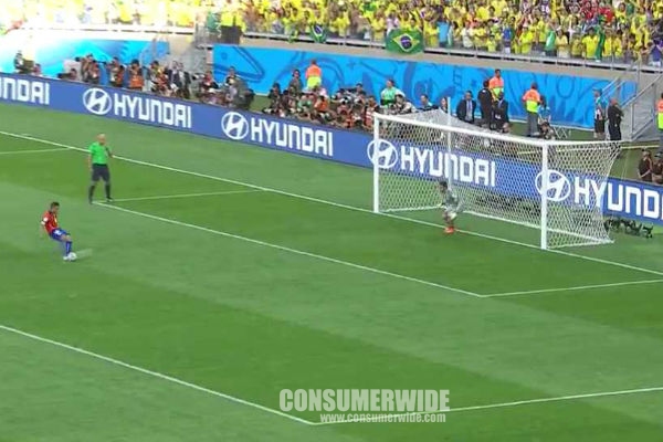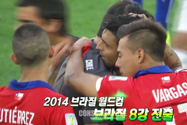 양측 2:2 동점 상황에서 브라질의 킥커로 브라질의 축구영웅 네이마르가 나와 멋지게 슛을 성공하여 3:2로 앞서 나가고 이어 칠레측 킼커로 나선 하라 선수는 그만 골포스트를 맞추고 말았다. 그렇게 승부차기에서 브라질이 승리하였고, 이를 지켜보던 칠레 선수들과 응원단은 안타까워하며 아쉬움을 달래야만 했다.