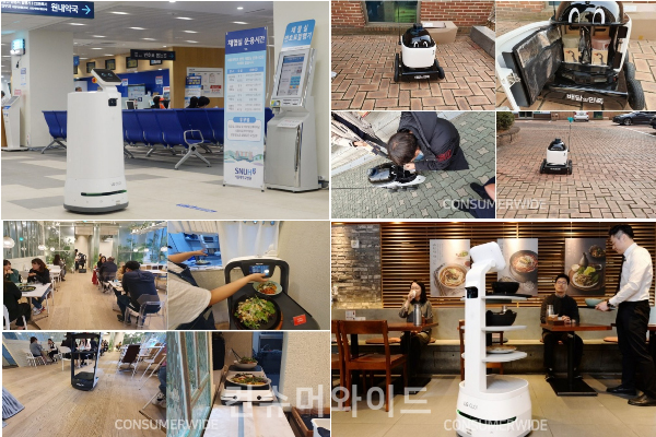 [컨슈머와이드-전휴성 기자] 로봇이 서빙·배달(송)을 하는 시대가 성큼 다가왔다. 최근 우아한형제들, LG전자, 현대자동차그룹, KT 등이 서빙·배달(송) 로봇 시장을 두고 치열한 경쟁을 펼치고 있다. 서빙 로봇은 이미 상용화돼 음식점, 병원 등에서 사용되고 있고, 배달(송)로봇은 실내 배달을 거쳐 실내외 배달로 영역을 확대, 곧 상용화될 것으로 전망된다. 문제는 소비자를 대상으로 하는 로봇서비스로 인해 발생하는 각종사고에 대한 보상 부분이 미비하다는 점이다. 그러나 로봇 서비스 관련 보험이 등장, 이문제도 해결되는 모양새다. 로봇이 서빙하고 배달하는 시대에 살 날도 멀지 않아 보인다.