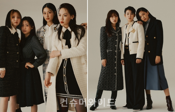 이들이 착용한 제품은 모조에스핀의 2021 F/W 윈터 컬렉션으로, 도회적이고 럭셔리한 스타일로 완성했다.