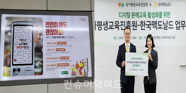 한국맥도날드는 키오스크 이용 등에 어려움을 겪는 정보 취약계층 성인들을 위한 키오스크 교육을 진행한다. 자료를 공동 개발 및 교육에 힘쓴다. 이를 위해 지난 4일 국가평생교육진흥원과 업무협약을 맺었다. 한국맥도날드는 자사 매장에서 키오스크 현장실습 교육도 진행할 계획이다. 한국맥도날드 관계자는 "디지털 취약계층의 불편함을 해소하고, 매장을 이용하는 모든 고객분들께 쾌적한 경험을 제공하는 데에 힘쓰고자 이번 업무협약을 기획하게 됐다. 한국맥도날드는 기업의 사회적 책임을 다하기 위해 노력할 것"이라고 밝혔다.