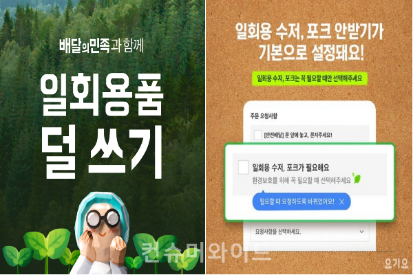 [컨슈머와이드-전휴성 기자] 배달앱들이 환경보호를 위해 다양한 활동을 전개 중이다. 다회용기 배달 서비스(관련 기사 참조)에 앞서 배달앱들은 일회용 수저 등 일회용품과 기본 반찬 안 받기 기능을 제공하며 적극적으로 일회용품 사용 절감을 위해 동참하고 있다.