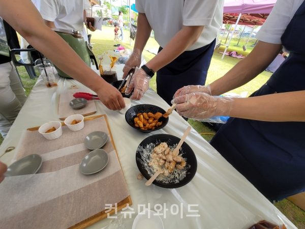 [컨슈머와이드-강진일 기자] 지난 17일 충북 괴산군에서 비건(vegan)을 주제로 ‘비건 in (人) 괴산 페스티벌’이 열렸다. 이날 오후 3~6시까지 충북 괴산읍 능촌리 소재 오가닉테마파크에서 진행된 ‘비건 in (人) 괴산 페스티벌’은 괴산군의 미래 신성장 산업인 푸드테크 산업, 식물성 대체 단백질 사업의 방향성을 담은 첫 번째 행사다. 이번 페스티벌은 ▲테크포럼(비건 쿠킹 클래스,푸드테크 포럼) ▲테크산업 전시 및 참여 (전시부스/ 먹거리 체험마당)▲체험행사 등으로 구성됐다.