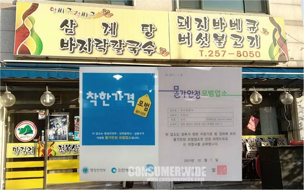 한편, 착한가격업소는 전국 6천558개 업소가 인증마크를 획득해 운영 중이다. 지난 2011년 시행된 이 제도는 소비자 물가 안정을 유지시킨다는 취지로 안전행정부와 지방자치단체가 주관하고 있다. 해당 지자체 장은 그 지역에 속한 식업, 이미용업, 세탁업, 목욕업, 숙박업 등 소상공인 업소 중 가격·위생·서비스 기준 등 착한가격업소에 적합한 업소를 선정한다. 착한가격업소로 지정받게 되면 금리감면, 온라인 홍보 등 해당 지자체로부터 다양한 혜택이 제공된다. 반면 해당 지자체가 선정한 착한가격을 유지해야 한다.