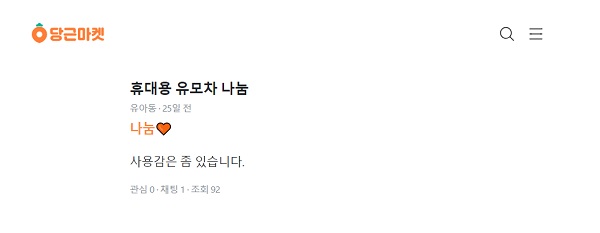 아무리 중고마켓에서 샀더라도, 우리에게 든든한 짐꾼이자 우주를 선사한 이 유아차가 폐기물로 처분될 위기라니... 남편이 폐기물로 '우주'를 접수하기 전에 긴급대책이 필요했다. 어차피 무료 나눔 할 예정이었기 때문에, 나에게는 한 푼의 이익도 떨어지지 않았지만, 일 년간 나와 함께 해준 육아동지 '우주'에 대한 최소한의 예의였다.