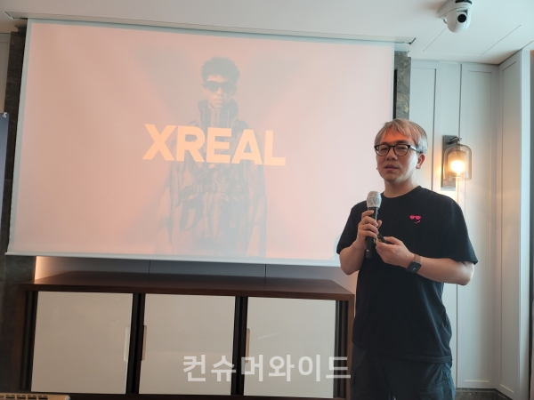 여정민 엑스리얼 한국 지시장은 19일 오전 11시 서울 롯데호텔 이그제큐티브타워 컨퍼런스 룸에서 진행된 기자간담회에서 “스마트폰을 통하지 않고 엑스리얼 빔만 가지고도 OTT 시청을 추구 하려고 한다”고 밝혔다.