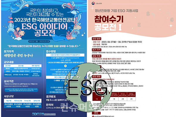 한국해양교통안전공단 ESG 경영 ‘아이디어 공모전’ 오는 25일까지, 고용노동부는 '청년친화형기업 ESG 지원사업 참여자 수기 공모전' 31일까지