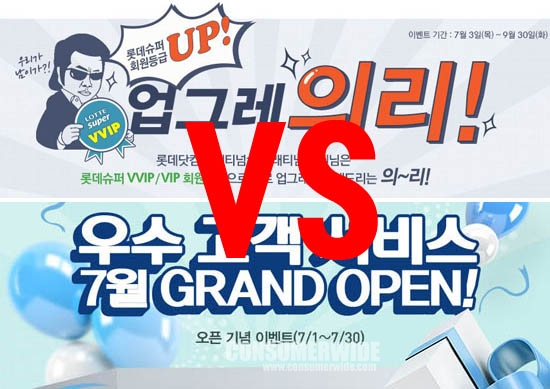 롯데닷컴, 온라인 슈퍼마켓 동일 혜택부여 VS CJ몰 구매실적 따른 실질적 혜택 부여