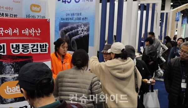 또 인기를 끈 곳은 냉동 김밥이다. 냉동 깁밥은 데워서 내놓기 무섭게 관람객들의 입으로 들어갔다.