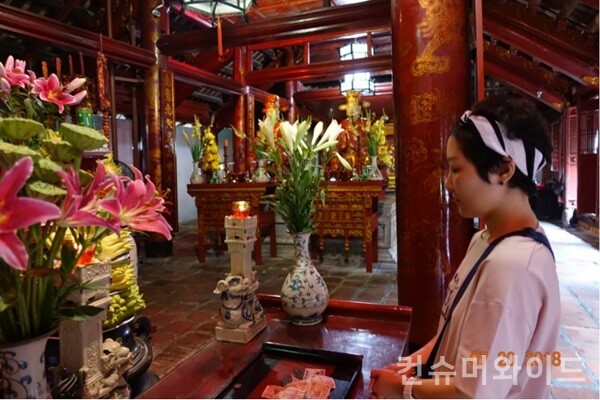 이튿날 하노이 문묘를 시작으로 하노이 관광에 나섰다. 입구에서부터 풍겨져 나오는 향냄새에 마음이 편안해졌다. 이 곳은 하노이 최초의 대학이었던 곳으로 공자를 모셔 놓은 사원이 함께 있다. 불교의 절과 비슷한 듯 다른 분위기를 자아내는 사원의 모습이 색달랐다. 공자를 비롯한 여러 학문의 신, 호랑이, 주작, 거북이 등의 정교한 조형물도 인상적이었다.