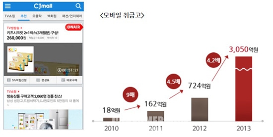 이와 관련, CJ오쇼핑 관계자는 “ 이러한 모바일커머스 성장은 TV홈쇼핑에서 판매되는 상품의 스마트폰을 통한 구매가 늘어난 것이 모바일커머스 성장의 주요한 요인으로 분석됐다”고 설명했다.