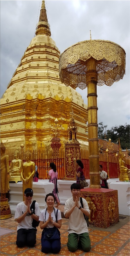 정상에 올랐다는 기쁨에 사로잡혀 발랄한 모습으로 신과 인사를 나눴다. 시련과 선물을 동시에 주신 신께 감사인사를 드린 후 도이수텝에서 내려왔다.
