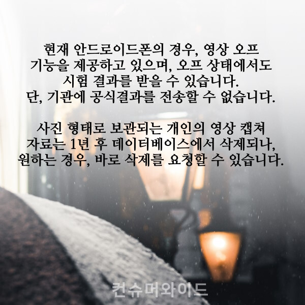 테스트 절차에서 유의할 점은 스피킹 테스트의 경우 실시간 영상이 촬영되는데 개인정보 상의 이유로 촬영을 원치 않으면 시험을 치르기 전에 영상을 끈 상태로 시험을 치를 수 있습니다. 현재 안드로이드폰의 경우, 영상 오프 기능을 제공하고 있으며, 오프 상태에서도 시험 결과를 받을 수 있습니다.