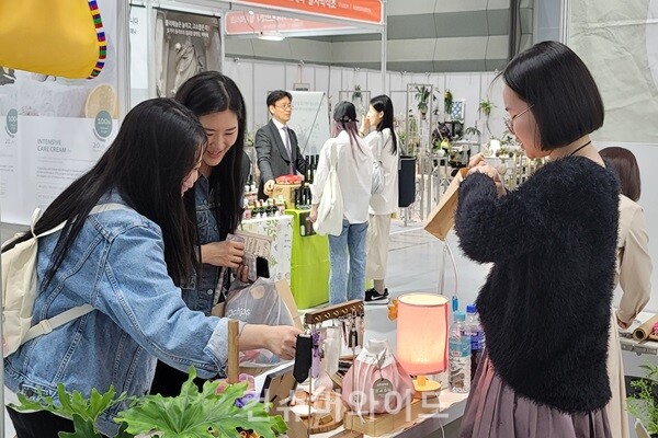 사진은 친환경을 위해 한복 새활용 제품을 판매하는 부스에서 가치소비자들이 악세사리를 구매하고 있는 모습.