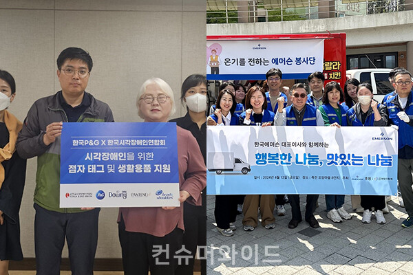 [컨슈머와이드-장하영 기자] 기업들의 사회 취약계층과 지역사회 공헌을 위한 기업들의 기부와 봉사활동이 진행됐다. 한국P&G는 장애인의 날의 의미를 새기며 시각장애인을 위한 생활용품과 점자태그를 기부했다. 불편함을 개선하고 안전한 생활용품 사용을 지원하는 의미가 있다. 한국에머슨은 취약계층을 위한 무료 급식 봉사를 진행했다. 경기도 용인시에서 임직원 30여명이 참여해 사회공헌 활동을 실시했다.