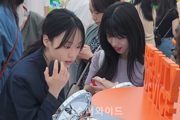 사진은 행사장의 '뷰티 디바이스 체험 존'에서 기기를 테스트 해보는 뷰티 가치소비자들의 모습.