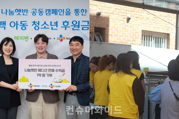 [컨슈머와이드-장하영 기자] 기업들이 자사 제품과 기부금을 모아 돌봄공백 아동 지원과 미혼모자 생활시설 등에 기부하며 사회공헌 활동을 진행했다. 가치소비자들이 직접 참여하고 응원하기도 해 의미를 더했다. CJ제일제당은 나눔햇반 캠페인을 통해 1억원 상당의 기부를 진행했다. 7만7천여명의 소비자들이 참여해 판매수익금 일부를 돌봄공백 아동들에게 전달한다. 피피비스튜디오스는 미혼모자 생활시설 애란원 사랑나눔 바자회에 1천만원 상당 자사 의류 제품을 후원했다. 판매 수입금은 자립 정착을 돕는 다양한 활동과 한국한부모가족복지상담소 운영 사업에 이용한다.