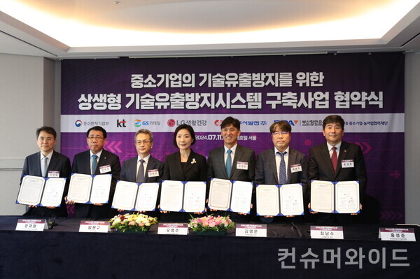 11일 오후 서울 중구에서 열린 ‘상생형 기술유출방지시스템’ 구축을 위한 상생협약식에서 LG생활건강은 중소기업벤처부, 대·중소기업·농어업협력재단, GS리테일, KT, 한국동서발전, 부산항만공사와 함께 상생 기금 출연 등의 내용을 담은 업무협약을 체결했다. LG생활건강은 이번 협약에 따라 협력회사들을 대상으로 보안정책 사업비와 컨설팅 비용 등을 지원한다.