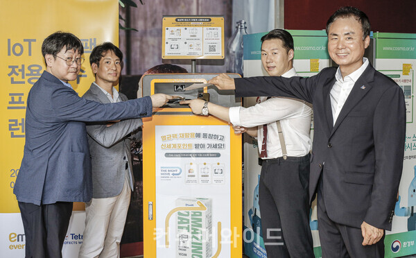 [컨슈머와이드-장하영 기자] 테트라팩 코리아는 이마트 에브리데이, 매일유업, 오이스터에이블과 함께 멸균팩의 선순환 체계 구축을 위한 멸균팩 IoT 회수기 설치 프로젝트를 시작했다. 4사는 인프라와 기술력을 기반으로 멸균팩 재활용 활성화를 위해 전국 이마트 에브리데이 매장 20곳에 멸균팩 IoT 회수기를 설치 및 운영하는데 협력한다.
