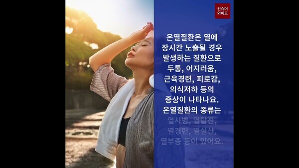 온열질환은 열에 장시간 노출될 경우 발생하는 질환으로 두통, 어지러움, 근육경련, 피로감, 의식저하 등의 증상이 나타나요. 온열질환의 종류는 열사병, 열탈진, 열경련, 열실신, 열부종 등이 있다.