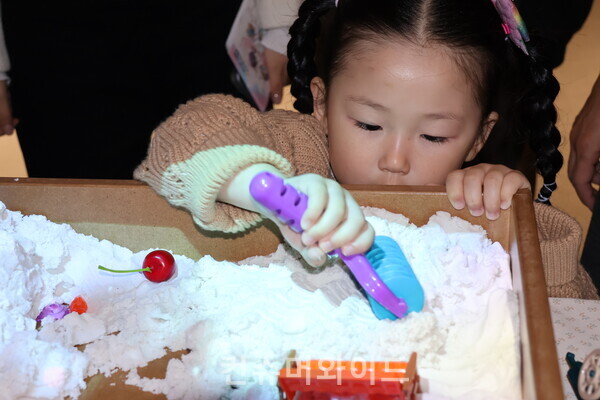 [컨슈머와이드-강진일 기자] 1일 서울 코엑스에서 열리고 있는 AI 콘텐츠 페스티벌 2024의 라리마 인터렉티브 전시 부스에서 한 어린 아이가 모레 만지는 것에 푹 빠져 있다. 이 모레는 THINKER BE가 제작한 특수 모레로 손에 달라 붙지도 않고, 항균처리가 돼 안심하고 아이들이 만질 수 있다. 또한 점성이 높아 찰흙처럼 잘 뭉쳐 모양을 만들기도 좋다.