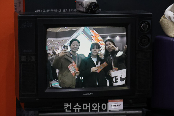 [컨슈머와이드-전휴성 기자] 20일 국내 최대 식품 종합 전시회인 ‘2024 농식품부 X 코엑스 푸드위크(이하 푸드위크)가 나흘간의 일정으로 코엑스 전관에서 시작됐다. A홀 삶에 변화를 주는 푸드&테크관에는 옛날 텔레비전이 전시돼 있다. 당시의 방송 프로그램과 티비 광고가 브라운관을 통해 나온다. 4개의 델레비전 중 하나는 관람객용이다. 텔레비전 위에 카메라가 설치돼 그 앞에 서면 자신의 모습이 텔레비전 브라운관에 나온다. 이날 한 여성 3명이 텔레비전에 나온 자신들의 모습을 스마트폰에 담으며 행복해 했다.