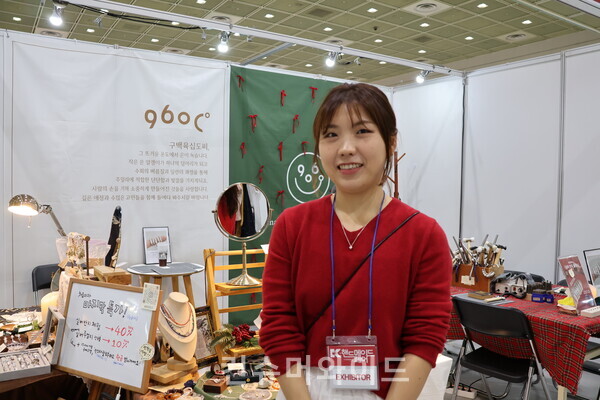 [컨슈머와이드-강진일 기자] '960도씨'는 핸드메이드 은(銀) 주얼리 브랜드이자 은(銀) 반지 등을 직접 만들어 볼 수 있는 공방이다. 대구에 있는데도 핸드메이드에 가치를 두고 있는 가치소비자들의 발길이 이어지고 있는 핫한 곳이다. 연인 사이에서도 인기가 높다. 자신들만의 사랑템을 소유하고자 하는 연인들의 데이트 코스로도 각광을 받고 있다. 960도씨 권은지 대표를 20일 K-핸드메이드 페어에서 만나 960도씨에 대해서 들어봤다.