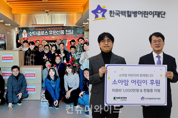 [컨슈머와이드-장하영 기자] 기업들이 어린이들을 위한 나눔을 진행하며 ESG 경영을 실천했다. 한국레노버는 서울시 상록보육원에 크리스마스 선물과 각종 후원 물품을 기부했다. 임직원들의 참여로 크리스마스 선물을 전달하고 생활용품으로 구성한 후원 물품도 전했다. 넥슨게임즈는 소아암 환자들을 위해 헌혈증과 치료비 1000만원을 기부했다. 한국백혈병어린이재단을 통해 소아암 환자들의 치료를 위해 기부를 진행했다.