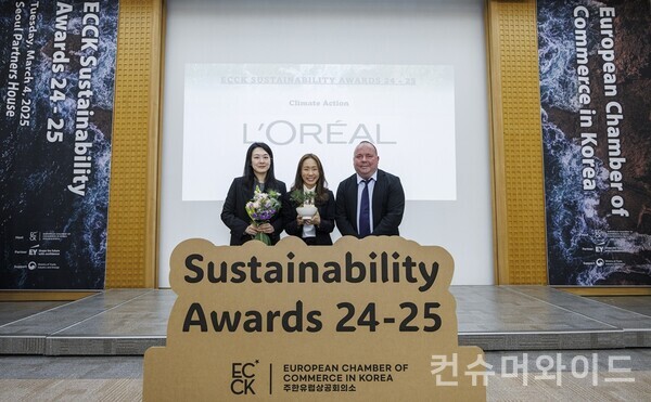 [컨슈머와이드-장하영 기자] 로레알코리아는 주한유럽상공회의소(ECCK)가 주관하고 산업통상자원부가 후원한 ‘ECCK 지속가능성 어워드 24-25’에서 기후행동 부문을 수상했다. 온실가스 감축과 기후변화 대응 노력을 인증받았다고 전했다.