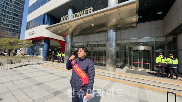 [컨슈머와이드-전휴성 기자] 19일 오후 2시 순화동 KG타워 앞에서 KGM 판매대리점협의회(이하 협의회)가 KGM 판매 대리점 지원 정책 유지를 촉구하는 집회를 연 가운데, 협의회 김일중 사무총장이 KGM을 향해 작심 발언을 했다. 김 사무총장은 본지에 대리점에 대한 KGM의 갑질을 제보한 제보자다.(관련 기사 참조) 그는 이날 집회에서 “단 한 번도 우리는 수수료를 올려달라고 하지 않았다. 정당한 수수료를 달라고 했다”고 목소리를 높였다. 상생에 가치를 두고 있는 소비자라면 이번 KGM 사태를 주의 깊게 지켜볼 필요가 있다.