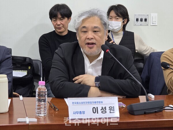 27일 오후 2시 서울 여의도 국회 의원회관에서 을지로위원회와 한국중소상인자영업자총연합회(한상총연)가 주관한 대리점 피해사례 발표회가 진행됐다. 이날 이성원 사무총장은 실사례를 통한 대리점 불공정 현황과 문제 해결책을 제안했다.