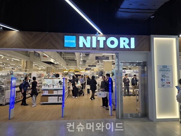 [컨슈머와이드-전휴성 기자] 니토리가 17일 서울 강동구 고덕비즈밸리에 위치한 상업·업무·문화 복합 시설 ‘강동 아이파크 더 리버 3층에 매장을 오픈했다. 중앙 에스컬레이터로 올라오면 왼쪽 끝에 매장이 자리한다. 매장 크기도 생각보다 작다. 오픈 첫날인데 매장은 몇몇의 소비자들만 있을 뿐 한산했다.