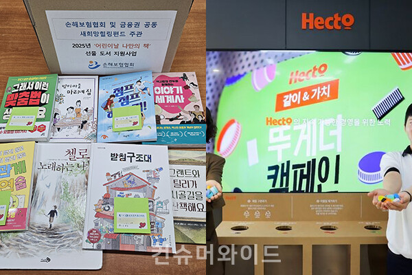 [컨슈머와이드-장하영 기자] 기업들이 ESG 경영 확대를 위해 취약계층 어린이에게 책을 지원하고, 업사이클링 캠페인을 실시했다. 행복한아침독서와 손해보험협회는 함께 취약계층 초등생 575명에게 총 1150권의 맞춤형 ‘나만의 책’을 지원했다. 헥토그룹은 ESG 나눔 프로젝트로 뚜게더 캠페인을 실시한다. 병뚜껑을 모아 업사이클링 제품으로 만들어 사내 마켓에서 판매 후 수익금은 취약계층에 전달할 예정이다.