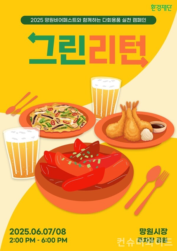[컨슈머와이드-장하영 기자] 환경재단은 오는 7일, 8일 서울 망원시장에서 열리는 ‘2025 망원비어페스트’ 현장에서 다회용품 사용 문화를 확산하기 위한 ‘그린리턴 캠페인’을 진행한다. 시민들이 직접 제로웨이스트를 실천하고 전통시장에서 일회용품 사용을 줄이도록 독려한다.