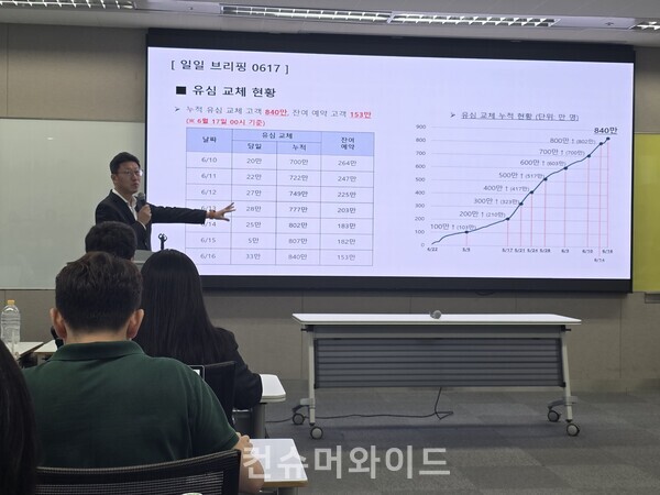 17일 오전 10시 진행된 SKT 데일리 브리핑에 따르면, 이날 0시 기준 16일 유심 교체자는 33만 명으로 누적 유심 교체자는 840만 명이다. 잔여 예약 유심 교체 가입자는 153만 명이다. SKT는 오는 19일까지 잔여 유심 교체 가입자의 유심 교체를 완료한다는 것이 목표다. 하루에 30만 명씩 해도 사흘 사이에 153만 명 유심 교체는 불가능하다. SKT가 이같은 목표를 세운 이유는 유심 교체 안내를 받고 매장에 오지 않는 가입자 수가 58만 명이나 되기 때문이다. 153만 명에서 58만 명을 빼면 95만 명이 남는다. 사흘 사이에 95만 명의 유심 교체를 완료하겠다는 것이다. 58만 명은 언제든지 매장에 방문하면 유심을 교체받을 수 있기 때문에 유심 교체로 간주하겠다는 것이다. 19일까지 1차 유심 교체를 완료하면 20일부터는 새로운 유심 교 교체 시스템이 도입된다.