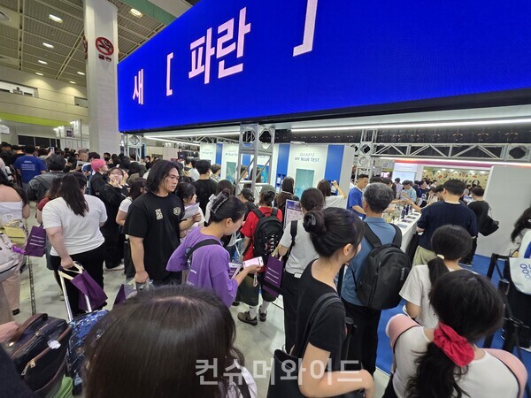 부스 관계자는 “첫날인 어제 이렇게 관람객이 몰리지 않았는데 오늘(27일)이 금요일이다 보니 행사에 참여하려는 관람객들이 많다”라면서 “제가 서있는 곳에서부터 약 30분 정도 기다려야 하는데, 행사에 참가하려고 관람객들이 줄을 서서 기다리고 있다”고 말했다.