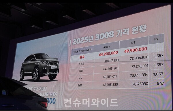 방실 대표는 “여러 가지 원가 상승 요인이 많았지만 8년 전 2017년에 2세대 푸조 3008 GT 국내 출시 가격 그대로 4천450만 원에 출시한다”면서 “이 가격을 만들기까지 수 차례 치열한 논의와 또 설득 그리고 때로는 간절함을 담은 강력한 협박까지도 마다하지 않았다”고 밝혔다.