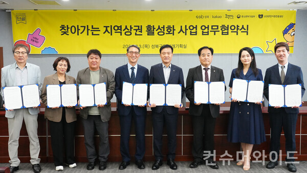 업무협약식은 7월 3일 성북구청에서 열렸으며, 사회연대은행 김용덕 이사장, 카카오 CA협의체 권대열 ESG위원장, 성북구청 이승로 구청장을 비롯해 소상공인시장진흥공단, 지역 상인회 관계자 등이 참석했다.