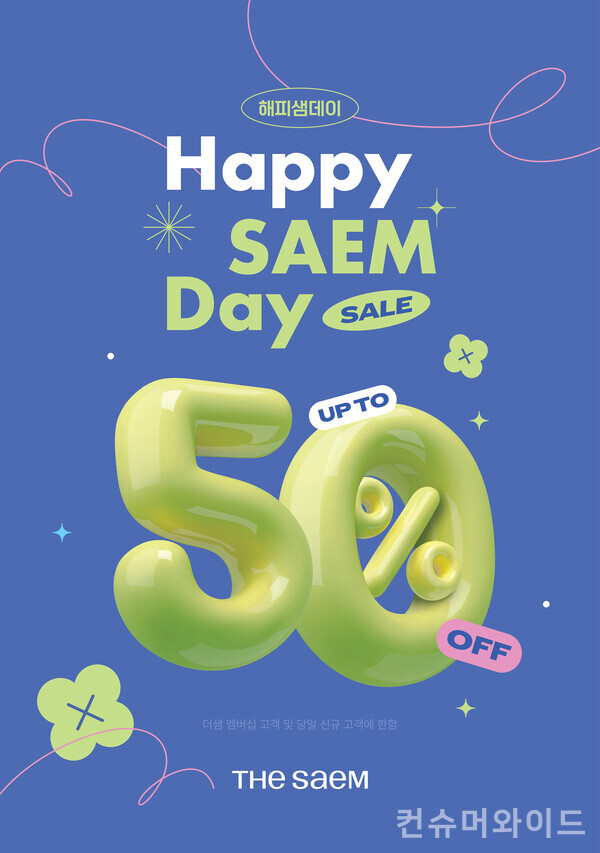 [컨슈머와이드-장하영 기자] 뷰티 브랜드 더샘은 여름을 맞아 최대 50% 할인하는 ‘7월 샘데이’를 진행한다. 가성비 추구 가치소비 소비자의 기회다. 7월 16일부터 20일까지 5일간 진행한다.