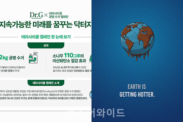 [컨슈머와이드-장하영 기자] 환경을 위한 캠페인을 통해 환경 가치소비를 하는 사례가 늘고 있다. 닥터지는 공병 수거 캠페인 ‘테라사이클 캠페인’을 통해 총 312kg의 공병을 수거했다고 밝혔다. 올해는 단순 자원 재활용을 넘어 기부까지 연계캠페인으로 실시한다. 마노스 사회적협동조합은 글로벌 캠페인의 일환으로 ‘뜨거워져요’ 뮤직비디오를 공개했다. 기후·환경 예술 실천 CEAM 캠페인의 출발점이다. 캠페인은 기후변화의 심각성을 풍자적으로 표현하고 지구가 인류에게 직접 도움을 청하는 듯한 이미지를 통해 경각심을 일으키는 방식이다.