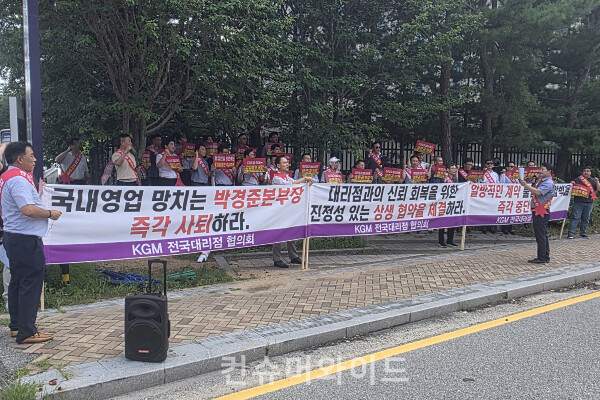 이날 집회에서 KGM 대리점 협의회 김성수 회장은 “KGM이 최근 일방적으로 제시한 ‘동반성장 인센티브’ 안은, 겉으로는 상생과 협력을 말하고 있지만, 그 실체는 대리점에게 일방적인 책임을 전가하고 선택의 자유를 박탈하며, 성과에 대한 정당한 보상을 왜곡하는 구조”라고 질타했다.