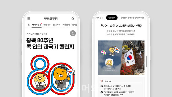 한편, 카카오같이가치는 지난 2013년부터 광복절을 기념해 대한민국 응원 캠페인을 진행하고 있다. 이를 통해 지난 12년간 총 79만 건의 인증 및 기부 참여가 있었고, 카카오와 이용자는 32억 1천843만 원을 함께 기부했다. 카카오메이커스에서도 2020년부터 독립유공자 후손을 위한 제품 판매와 기부를 이어오고 있으며, 지난해까지 4만 4천955건의 주문을 통해 판매 수익금 약 2억 4천만 원을 한국해비타트에 기부한 바 있다.