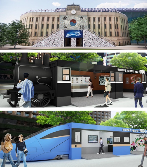 서울도서관 전면 꿈새김판에는 ‘단지동맹 혈서 태극기’를 모티브로 한 작품이 내걸리고, 태극 바람개비 300개로 단장한 가로 45m‧높이 6m의 ‘태극기 언덕’도 조성된다. 또 독립운동가들의 스토리와 과거, 현재는 물론 미래 서울 모습을 담은 ‘광복열차’도 전시된다.