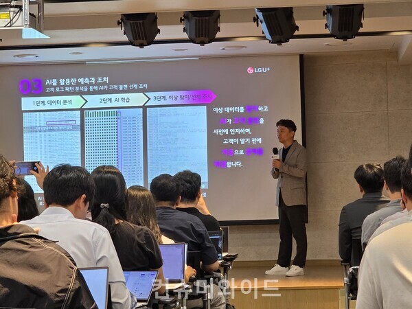 이날 김진만 담당은 LG유플러스가 이번에 독자적으로 개발한 ‘AI 기반 고객 불편 예측 및 선제 조치 시스템’ 개발 배경을 설명했다.