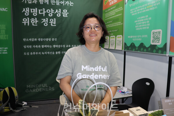 지난 26일 제2회 사회적 가치 페스타 내 마인드폴가드너스 부스에서 만난 이진영 활동가는 “ 지금 다양한 사회문제, 재난 등의 문제 해결에 가장 중요한 것이 자연 감각의 회복이라고 본다. 이런 자연 감각을 잃어버린 도시인들이 공동체를 생각하거나 자연과 생명들에 대한 감각이 좀 떨어져 있기 때문이라고 생각한다”면서 “정원 활동을 통해서 다시 한번 자연 건강을 키우고 공동체에 대한 생각을 확장하고, 기후 위기 대응까지 할 수 있다는 비전을 갖고 있다”고 밝혔다.