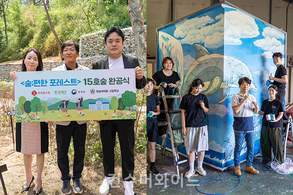 롯데홈쇼핑과 환경재단은 경북 청송여자중·고등학교에서 ‘숨;편한 포레스트 15호숲’ 완공 기념식을 개최했다. 학교숲 조성은 산불로 큰 피해를 본 지역 교육 현장을 복원하고, 학생들이 다시 마음껏 쉬고 숨 쉴 수 있는 생태 공간을 되찾기 위해서 진행하고 있다. ‘숨;편한 포레스트’는 미세먼지 저감과 탄소중립 실현, 생태환경 회복을 목표로 환경부·환경재단·롯데홈쇼핑이 2020년부터 공동 추진해 온 도심숲 조성 사업이다.